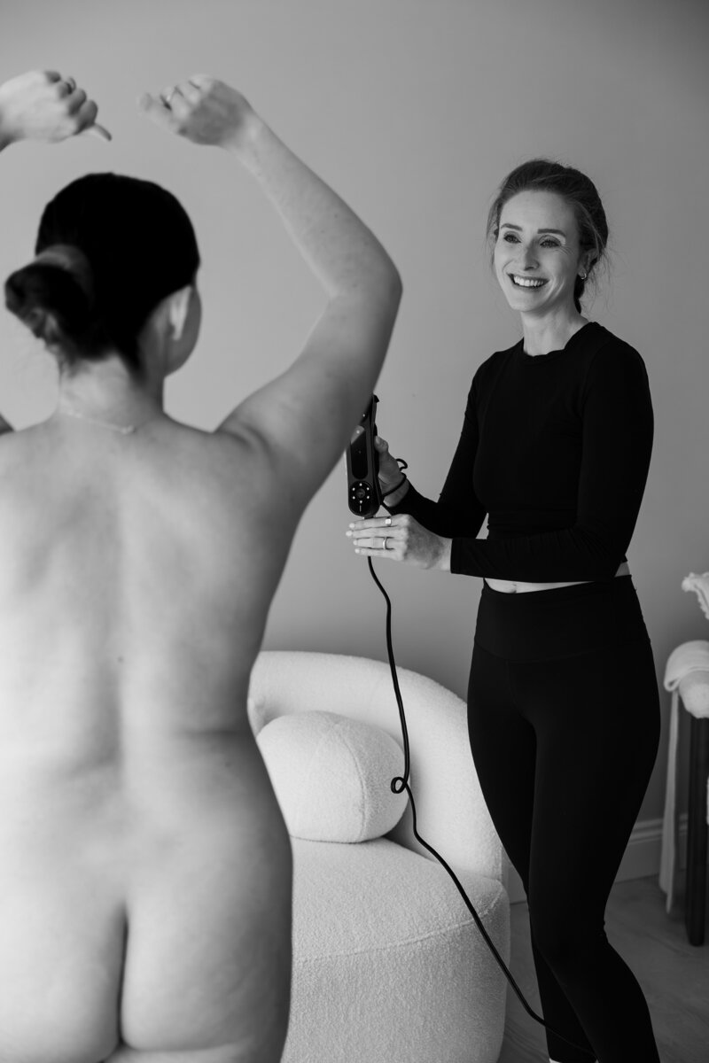 You’ll be gently guided through a few relaxed poses while we carry out a 3D body scan. Once you're comfortable and ready, we’ll ask you to remove your dressing gown to begin the scan.